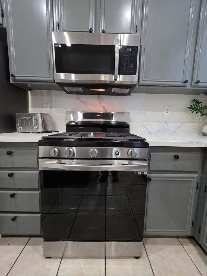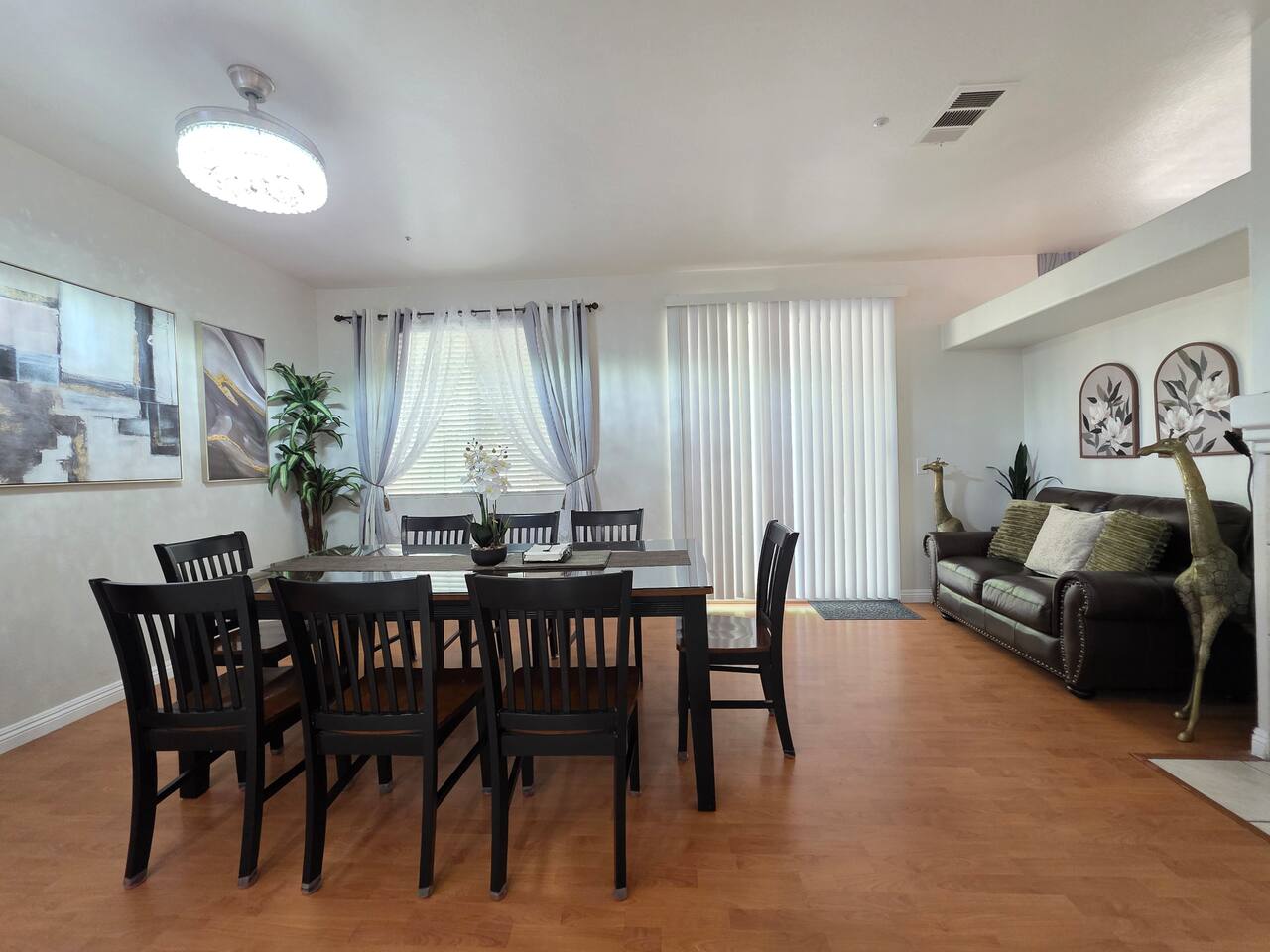 The home is big, spacious and well maintained, with consistent decor throughout the rooms. The backyard was stunning; private, enclosed, plants trimmed and beautifully kept, and the neighborhood feels safe and quiet. The elegant kitchen and living room made us feel right at home. It was the perfect setup for our family gathering.