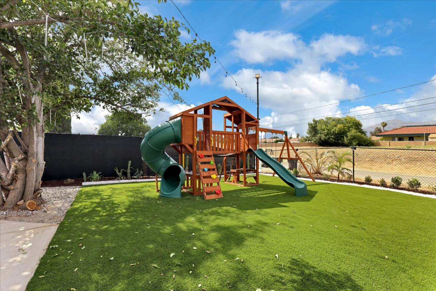 Come and experience a rural location feel with a touch of a modern facilities. Imagine yourself in a countryside alley in the middle of an urban community. The once dark street is now well lighted and gated property with a huge (I mean huge) front and side yards with no neighbors at the back, left and front yards. On the right side is a good neighbor with 3 small dogs. They sometimes bark at strangers but stop barking once they get to know you. No worries, the privacy fence is far from the home. Yes, a privacy tarp is installed along the neighbor side and there is also a sun shade for added privacy and shade from sun. The back of the house is a row of nice matured cacti that you can see only in the deserts and serves as a privacy cover. There is a walking trail along the flood control water way at the back of the house. You may do a morning or late afternoon hike along the trail if you feel like doing it. On the left side is a fenced vacant lot that is also part of the house and opposite the vacant lot is Dearborn St. The Front of the house is a huge vacant lot but you can see neighbors along your line of sight. Your guests may park here across the house if all parking spots are taken. PLEASE DO NOT PARK BEYOND THE SIGN "1550 Sylvan Blvd visitors/guests do not park beyond this point". You have been warned, the neighbors might not like a lot of cars parked across their houses. Don't worry, we got plenty of parking inside the property, across our property and along Dearborn St., just don't take the spaces of the neighbors which is a common courtesy. You can hear birds chirping and common sights around the yards are wild animals like squirrels, skunks & gophers. Yes, gophers like our yards because of the huge vacant lots around the house. Outside night bugs, insects are also common like any other countryside living but we keep our night insects to the minimum because we got 4 UV insect zappers around the exterior of the house to minimize nuisance to our guests. Enjoy the quietness of the neighborhood and feel the breeze under the decorative lights around the house. Bonding with your family, friends and guests at the shed is perfect ambiance with a beautiful 4-hole practice putting green. Either you are a pro, an amateur or novice gulf player, you will like it because the name of the game is fun under the moon. Not to mention the nice playground for your kids. Playground is fitted with a nice synthetic grass blended beside the real grass. Come and enjoy the fun in Southern California sunshine! Oh before I forget, help yourself with the year round grape fruits, lemon & pomegranates if it happens to be in harvest time. Don't forget to leave some for the other guests :)